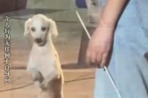 网友街头偶遇小狗表演,两条前肢悬空跨越障碍物